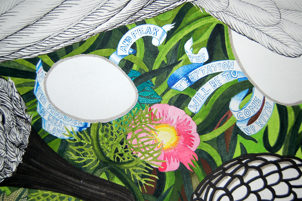 Simpson, Eggs and Worries (detail), Ink and watercolor on